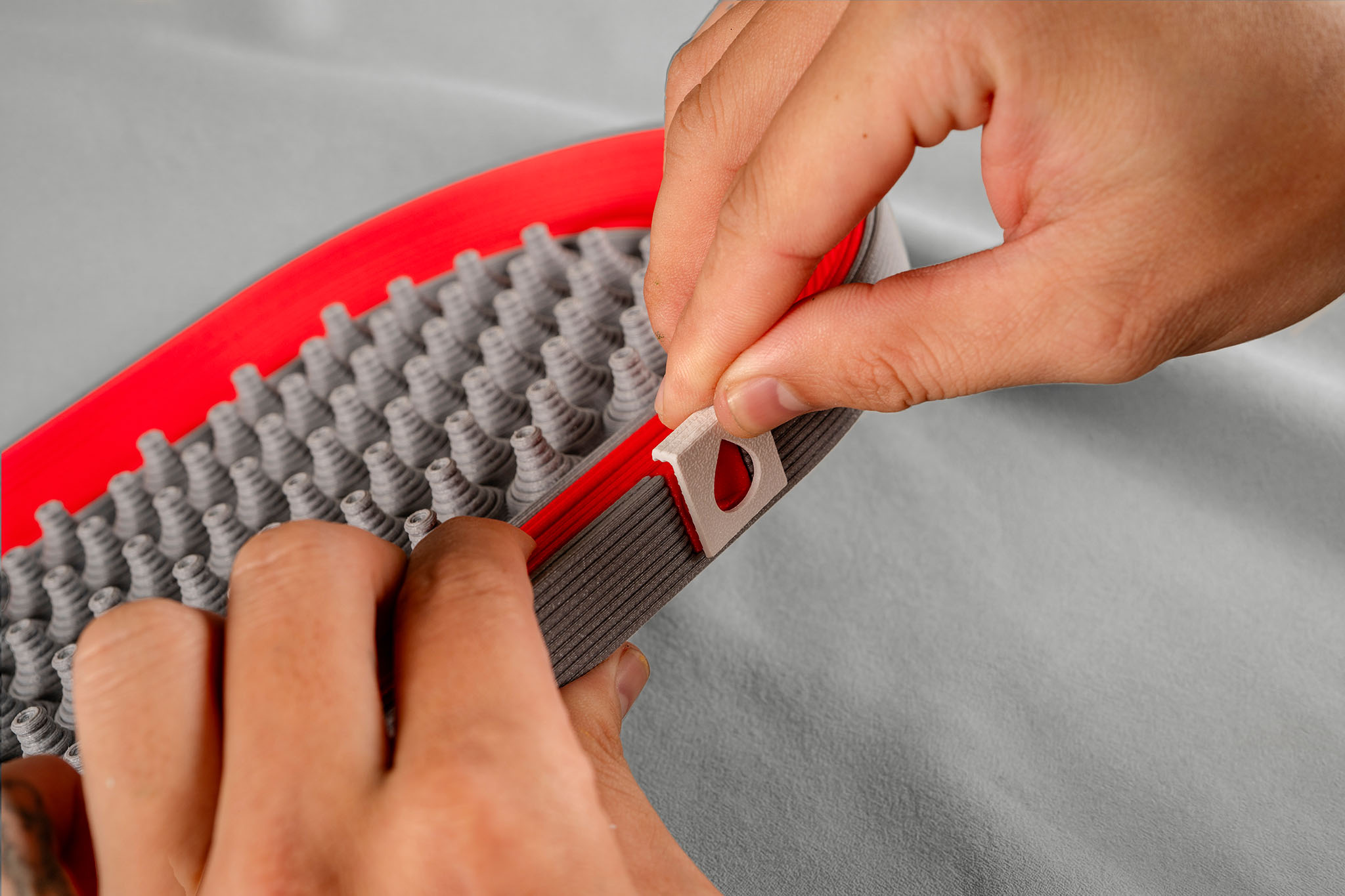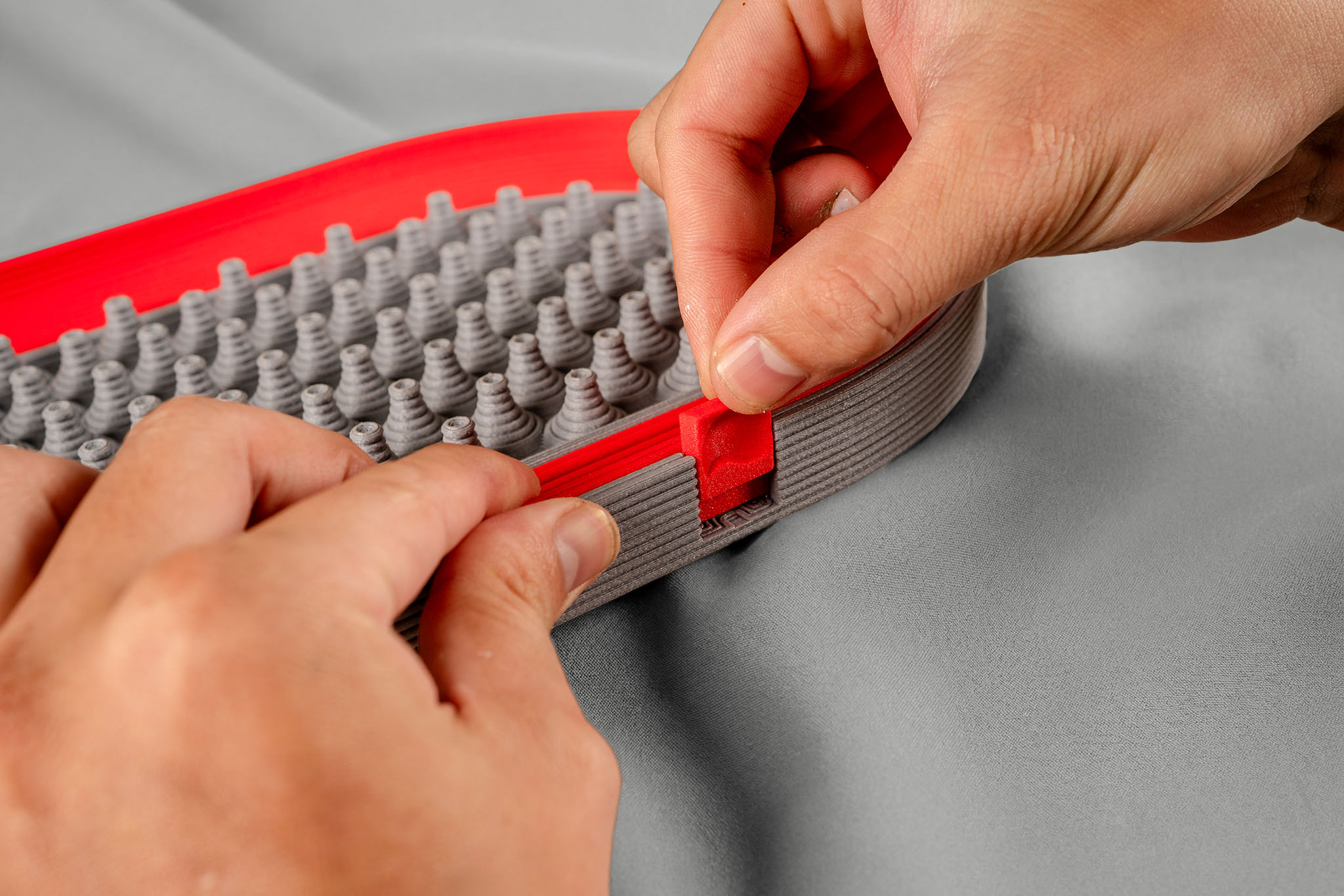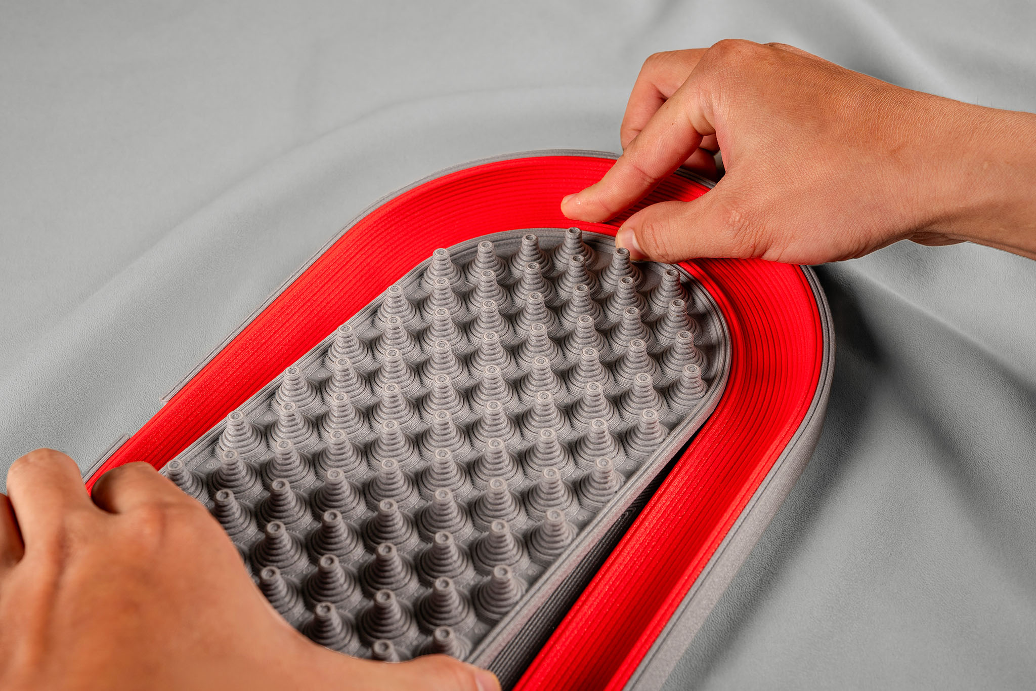Each tray is printed on an industrial-grade machine, one run at a time. Print settings have been dialed in over months: layer adhesion, infill density, wall thickness, cooling profiles. Parts that don’t meet the standard get pulled. What ships is assembled by hand, aligned, bonded, and finished so the seams between components practically disappear. Pick one up and it doesn’t feel printed. It feels built.